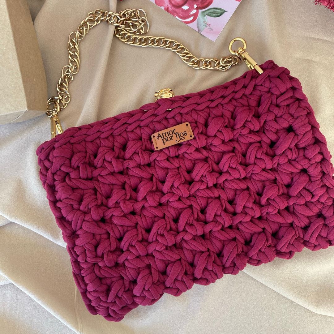 A bolsa Maitê é feita em fio de malha premium. Ela é forrada e seu tamanho aproximado é 26 cm de largura, 18 cm de altura e 3 cm de lateral.